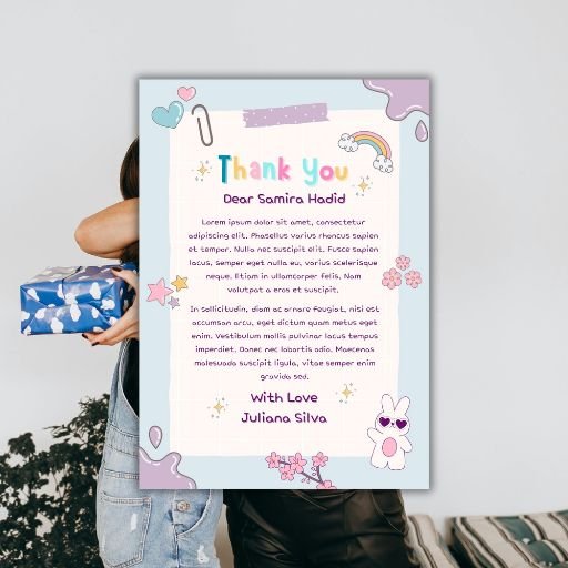 Colorful Pastel Cute Illustrated Thank You Letter A4