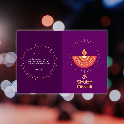 Purple and Yellow Lantern Illustration Diwali Postcard